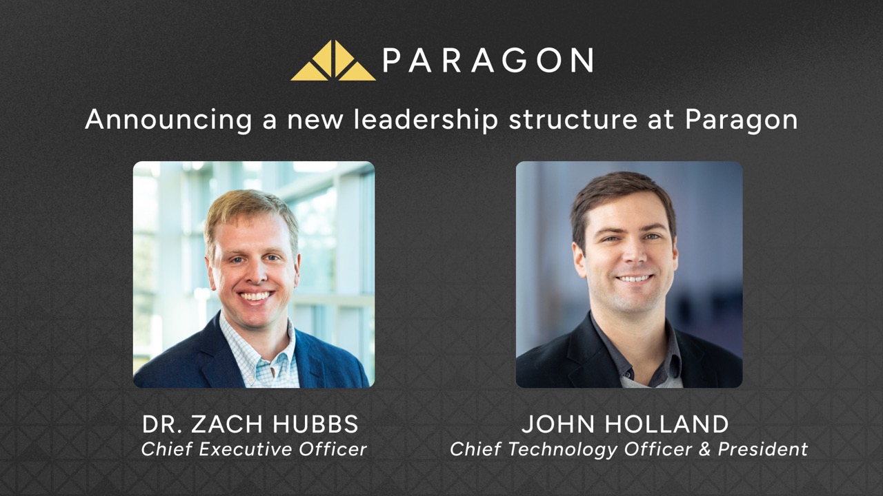 Dr. Zach Hubbs has stepped into the role of Chief Executive Officer, and our founder, John Holland, is transitioning to Chief Technology Officer and President, where he’ll focus more directly on product development, software engineering, and the long-term technical direction of the platform. Zach will lead business development, partnerships, and growth, while John continues pushing the technical boundaries of what Paragon can offer.