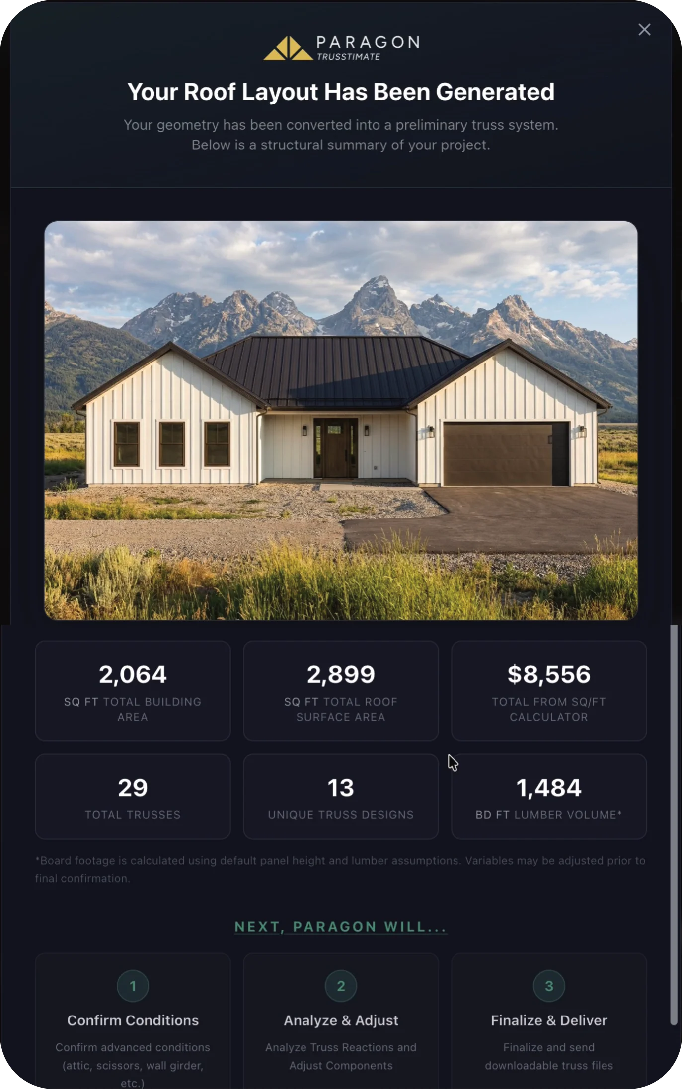 Know early whether a roof can be built using real truss logic, not assumptions.